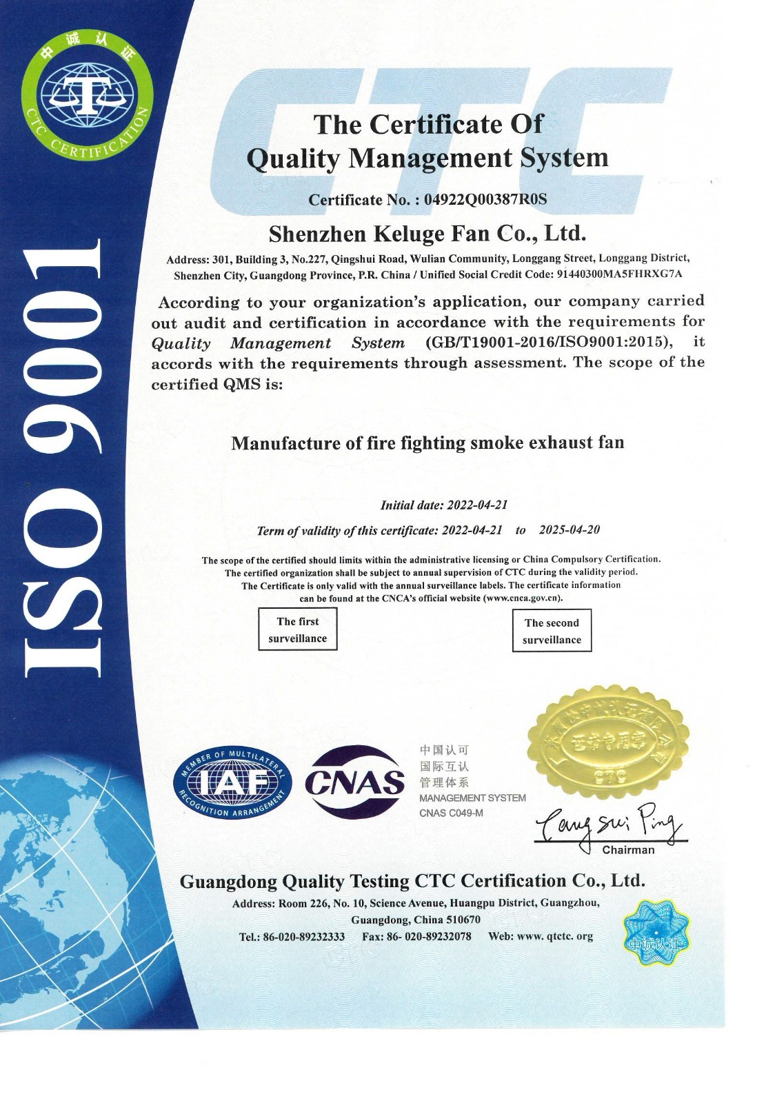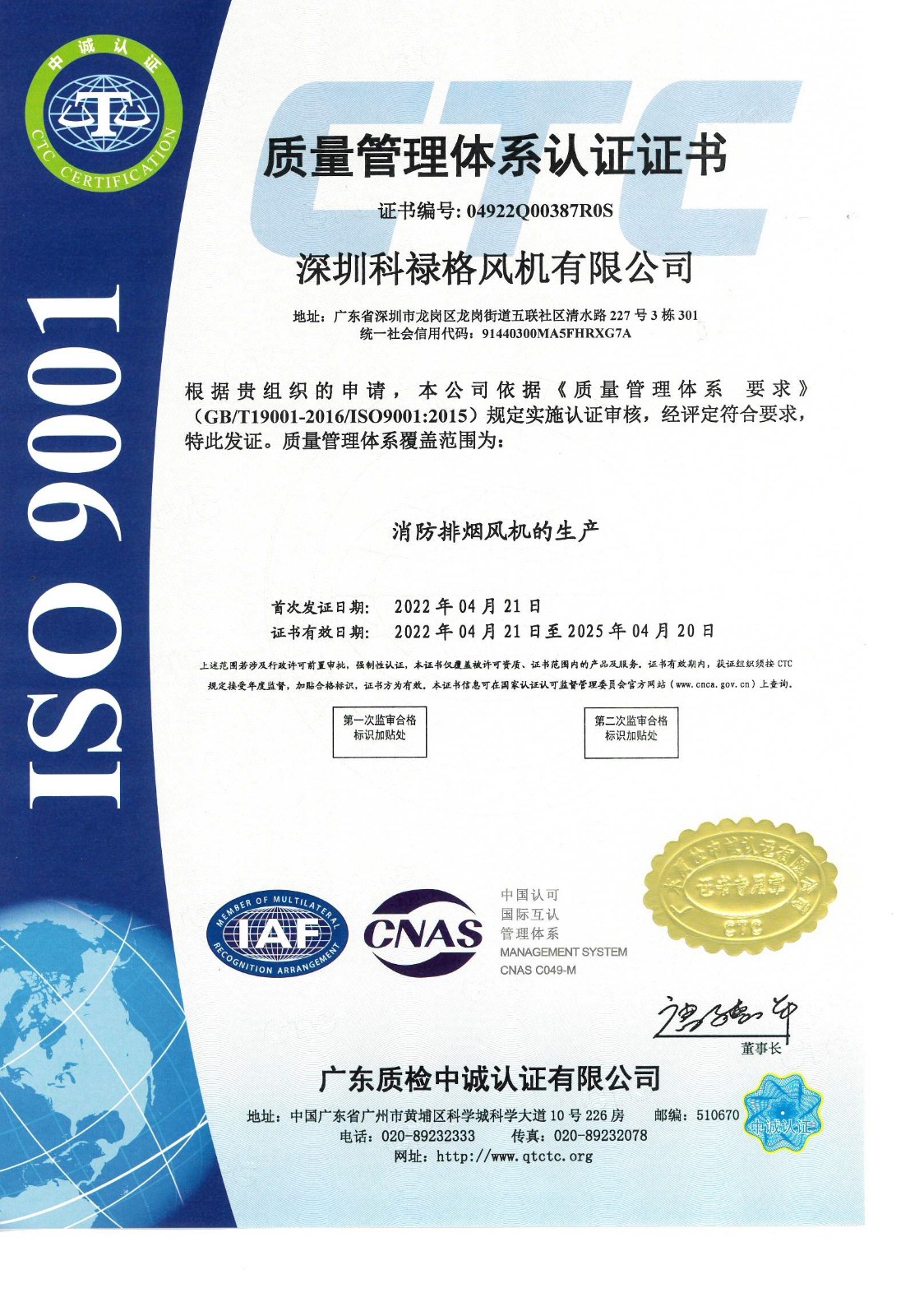 质量管理体系认证证书